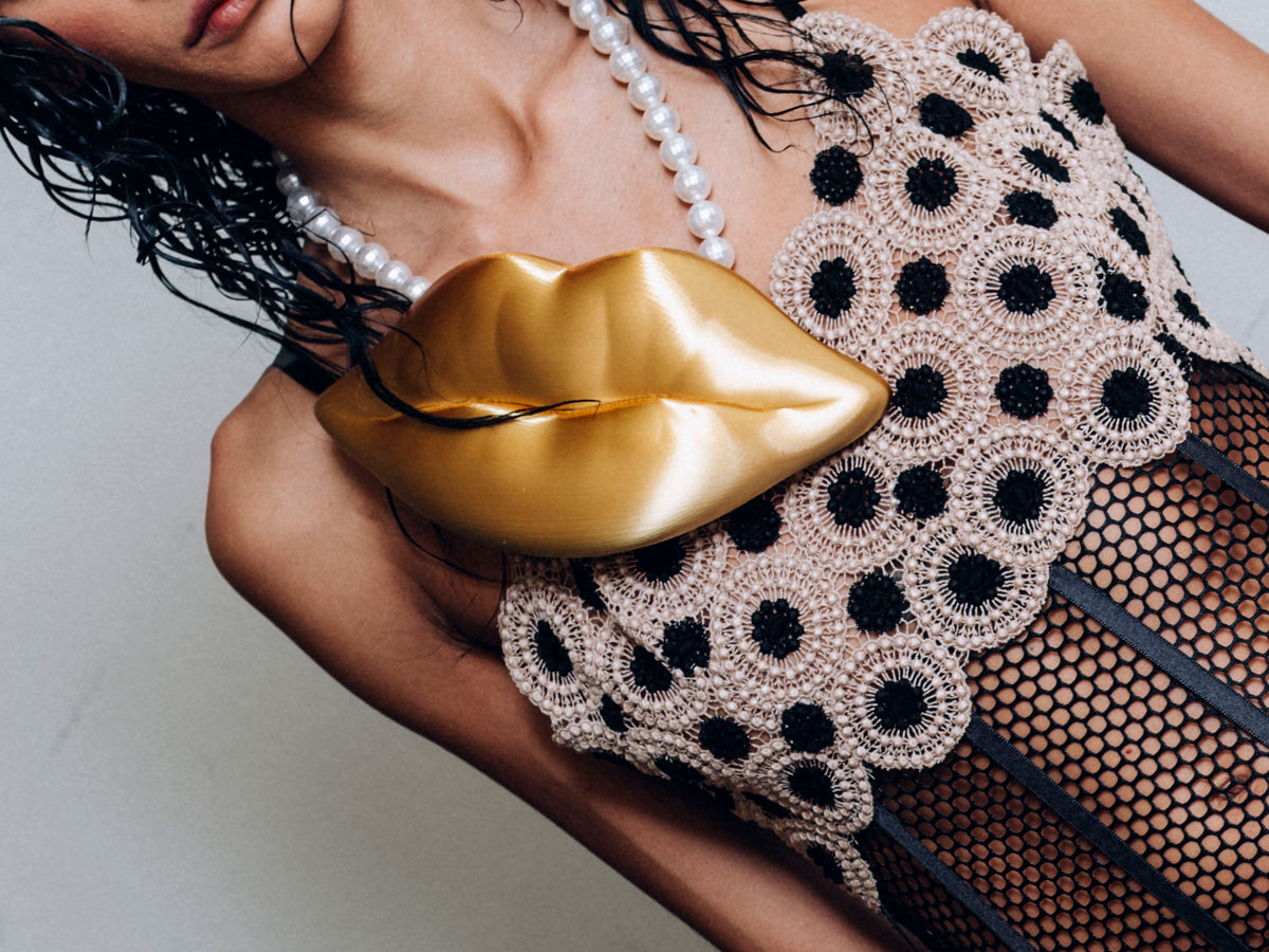 , Kiss Me Bold – Handgefertigte Statement-Ohrringe mit Kussmund & Strasskugel