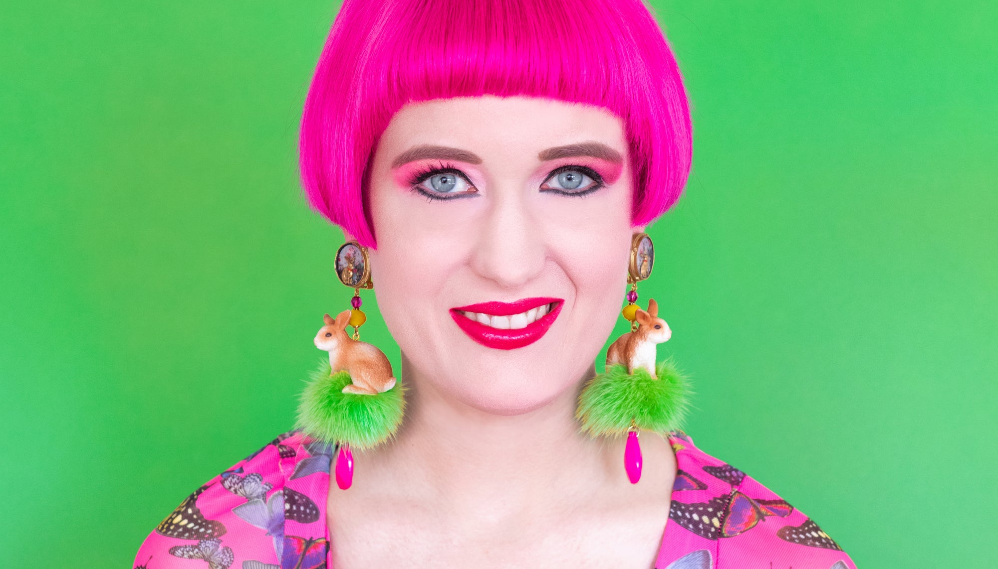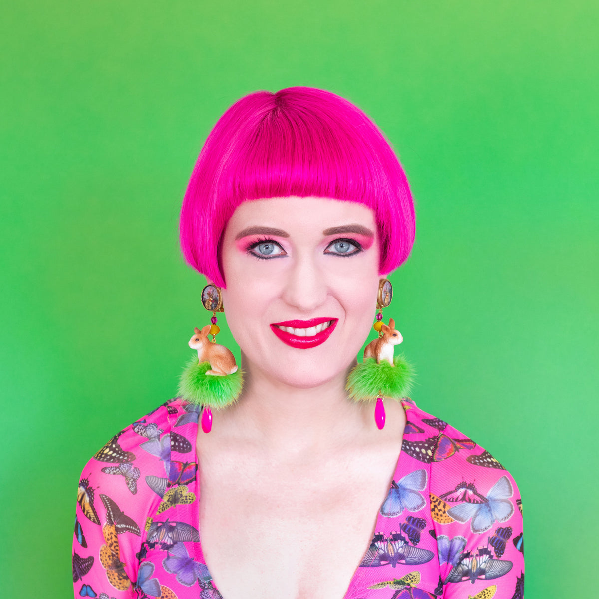, Tukadu Oster-Ohrringe 'Pink Fluff Bunny' – Handgefertigte Statement-Ohrclips mit 3D-Hase & Neon-Puschel