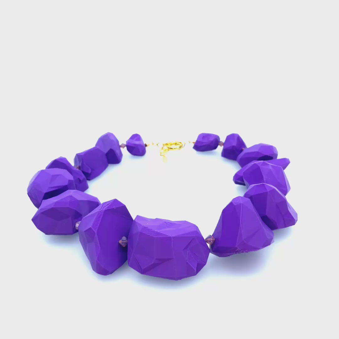 'Pop Rocks’ CollierViolet - 3D-gedrucktes Statement-Piece mit Strass von Tukadu