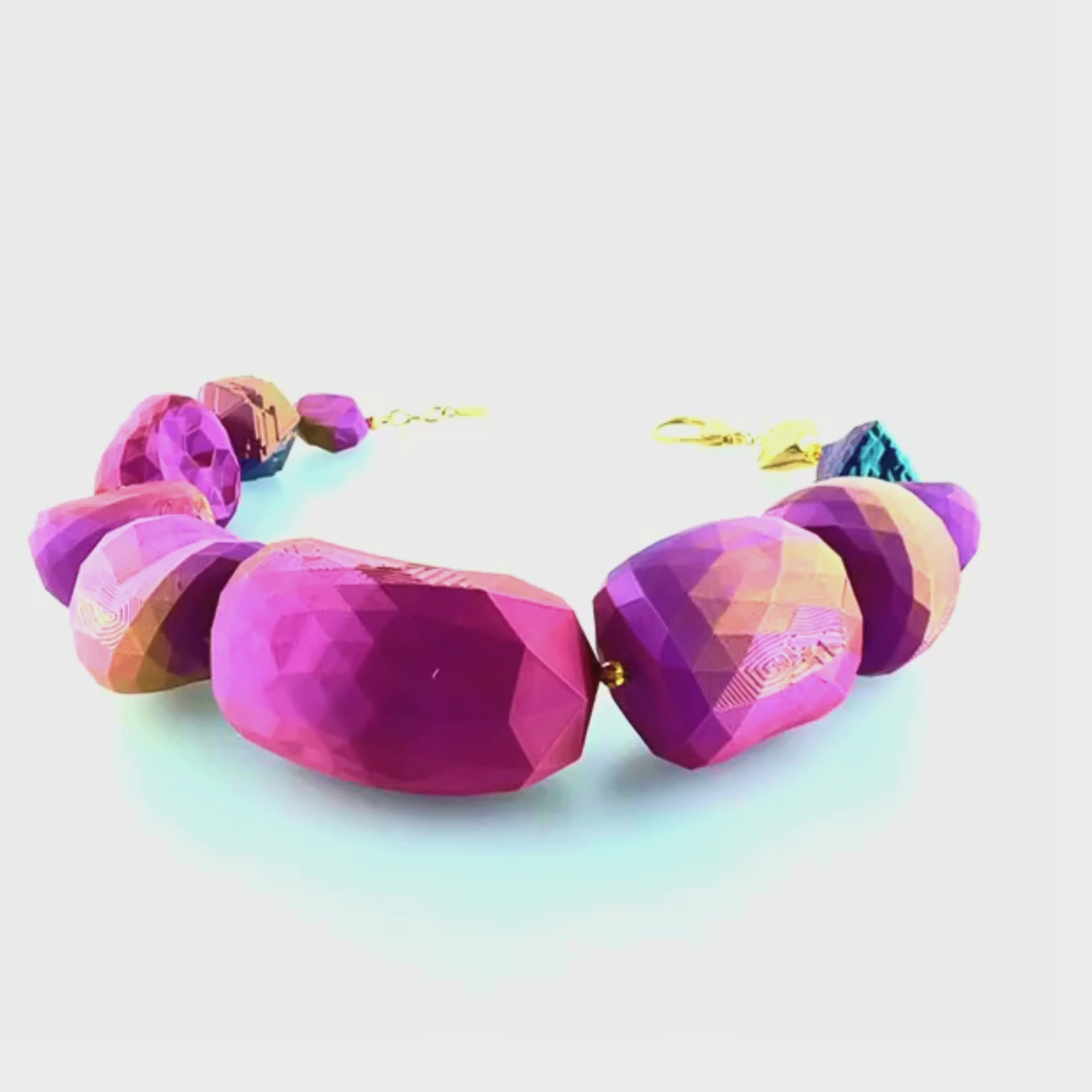 Opulentes Statement-Collier mit federleichten mit 3d gedruckten Schmucksteinen aus Filament in irisierendem Seidenmattfinish.
