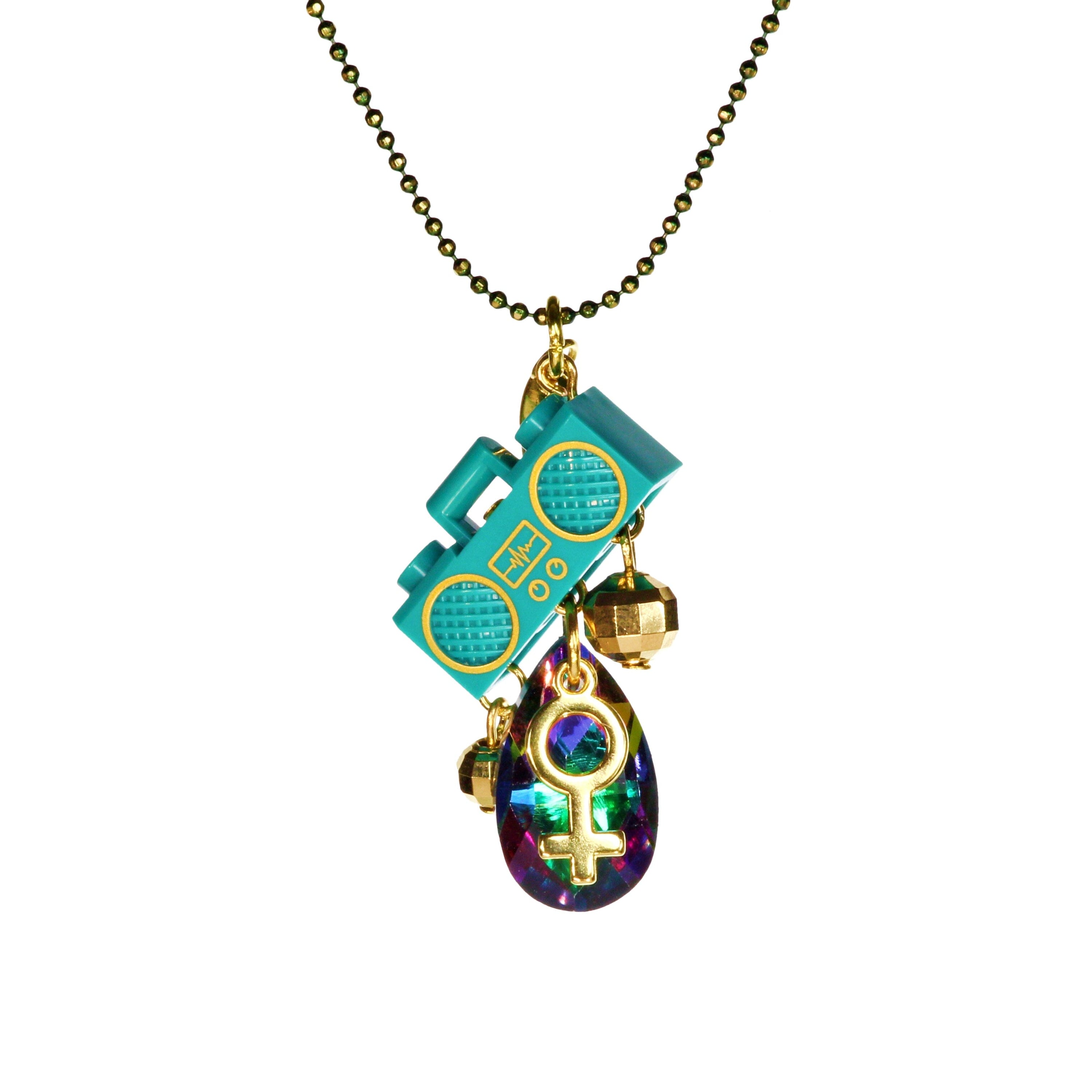 Ohrring aus petrolfarbiger Quaste, Holzcameo einer berühmten mexikanischen Künstlerin und filigranen Strassperlen von SWAROVSKI CRYSTALS