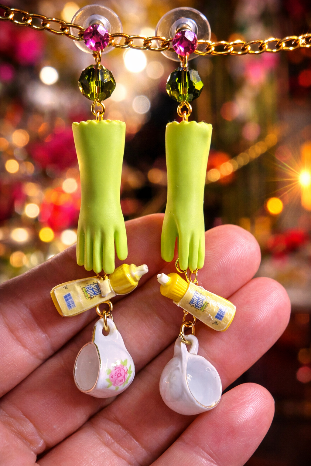‚Helping Hands‘ - Handgefertigte Ohrringe mit Küchen-Utensilien & Swarovski-Strass