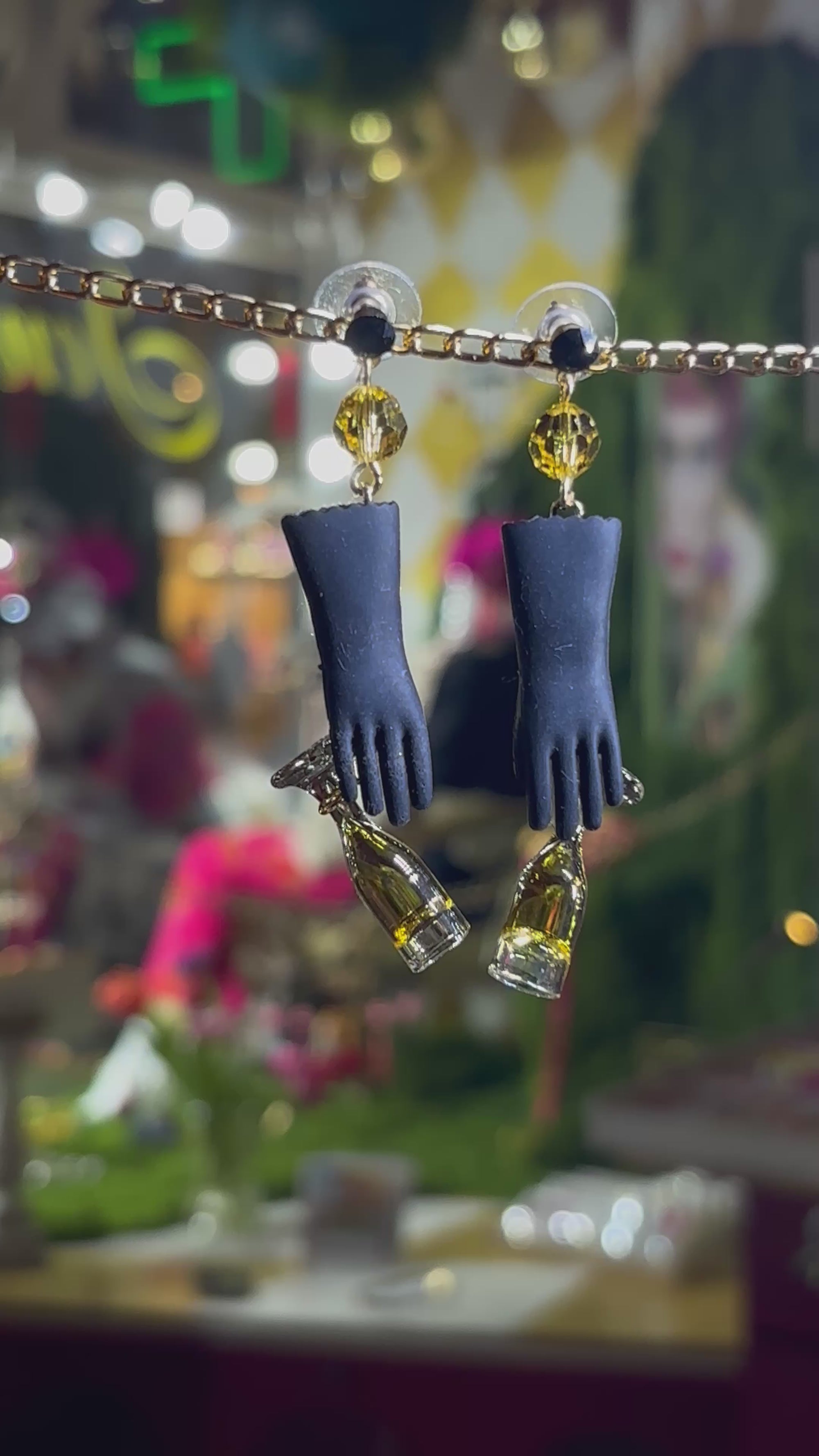 Diese außergewöhnlichen Statement-Ohrringe von Tukadu verbinden Humor, Detailverliebtheit und ein selbstbewusstes Design. Verspielte schwarze Handschuh-Motive, funkelnde Kristalle und kleine charmante Weingläser machen jedes Paar zu einem echten Blickfang. Trotz ihrer auffälligen Optik sind die Ohrringe angenehm zu tragen und bringen Bewegung und Leichtigkeit in jedes Outfit. Perfekt für alle, die Individualität lieben und Mode als Ausdruck von Persönlichkeit verstehen. Ideal als Highlight zu schlichten Looks oder als bewusster Stilbruch.