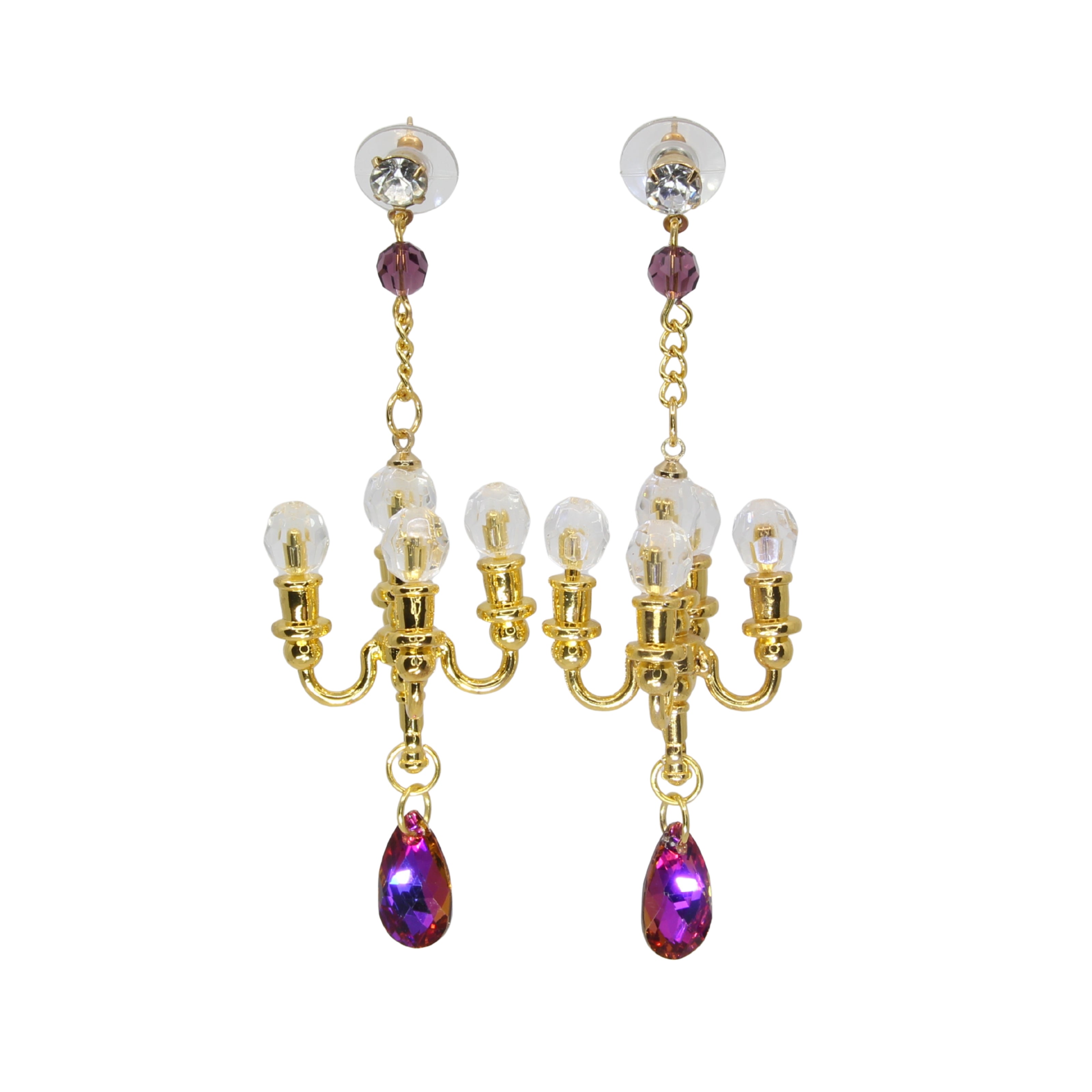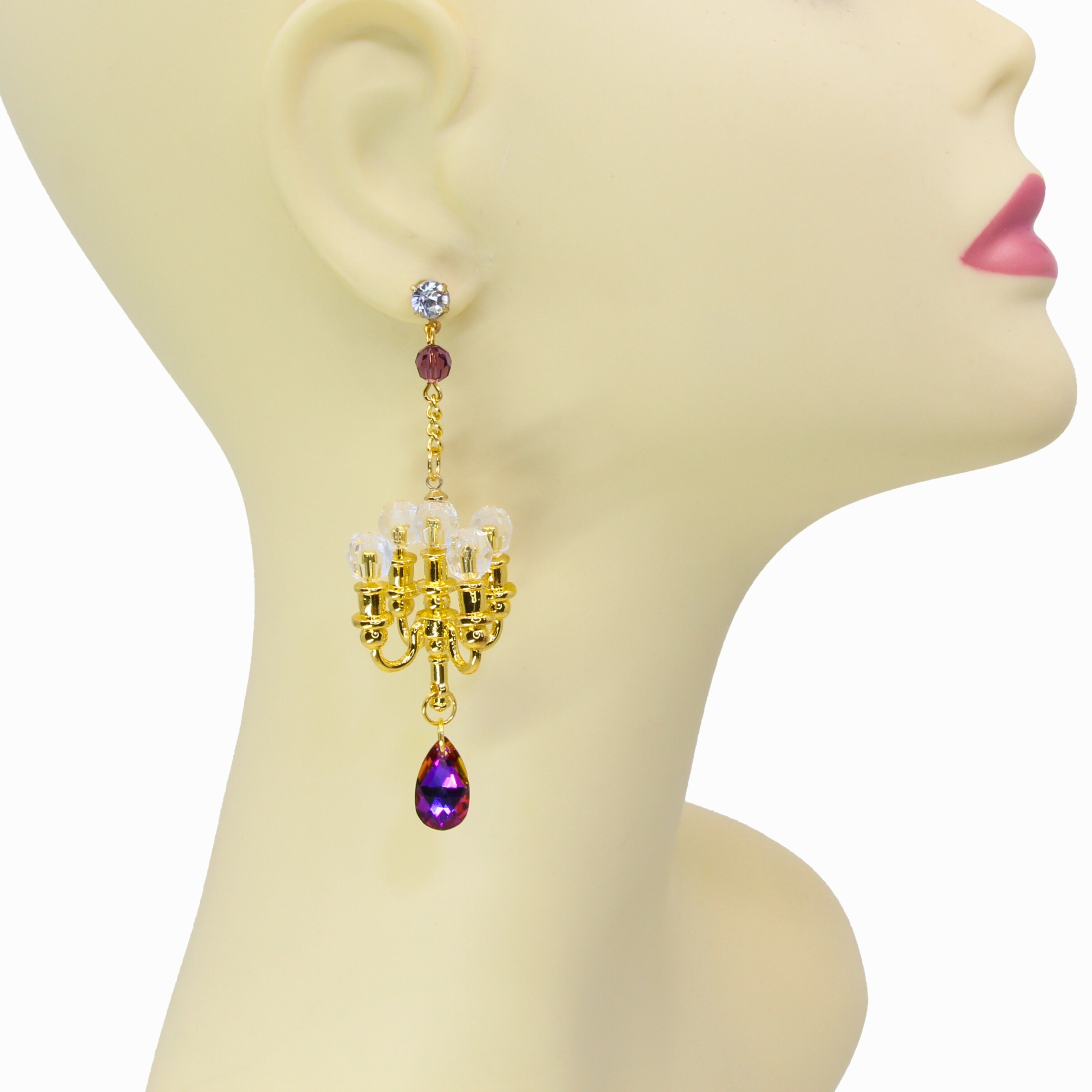 Die Ohrringe sind in zwei Farbvarianten erhältlich: einmal mit klassisch vergoldetem Korpus und pink-violettem Kristalltropfen, einmal in silberfarbenem Finish mit einem tiefblauen Stein. Beide Versionen bringen Licht ins Dunkel – ob zu festlichen Outfits oder als glänzendes Statement im Alltag.