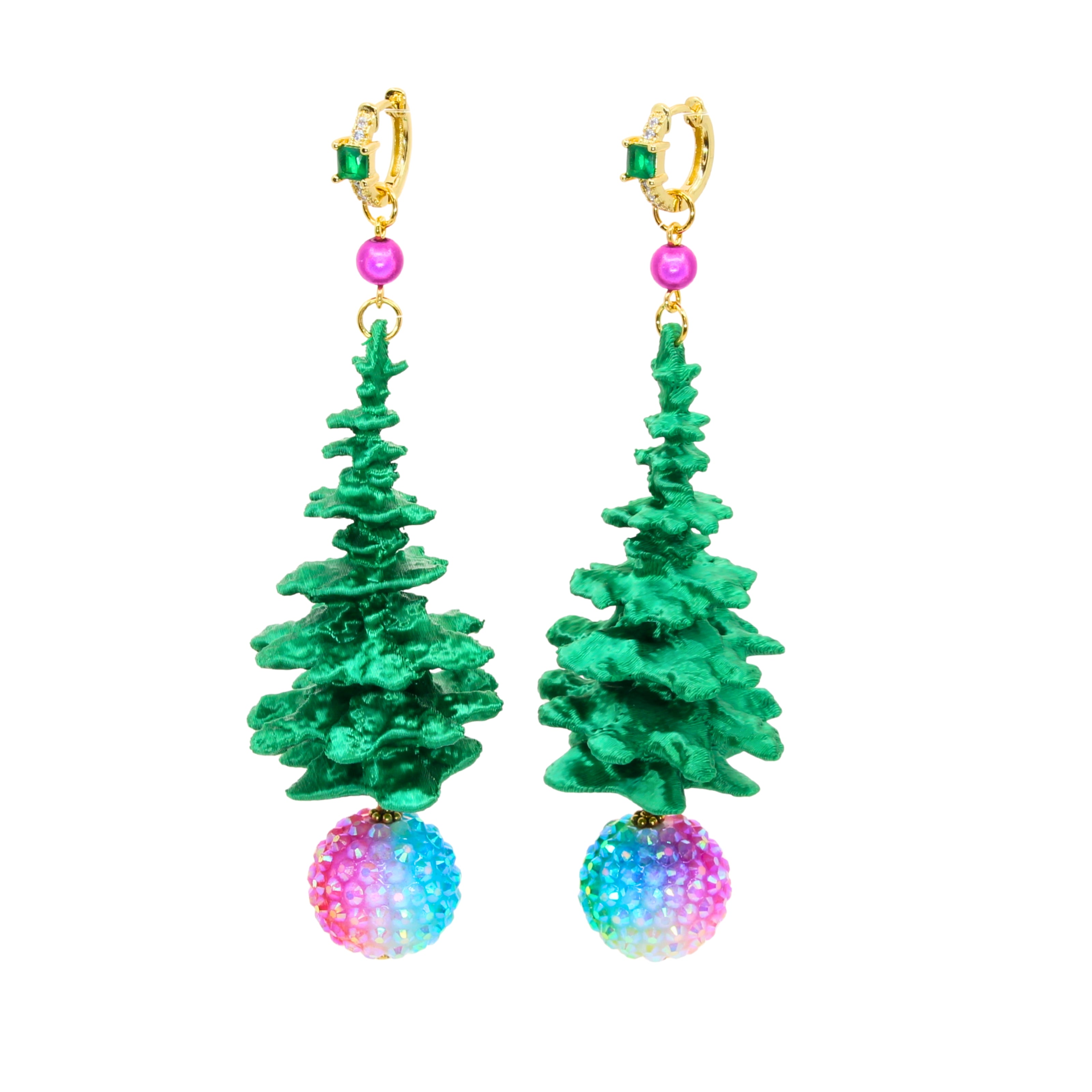 'Regenbogentanne' Ohrringe - handgefertigte weihnachtliche Ohrhänger mit Tannenbaum von Tukadu